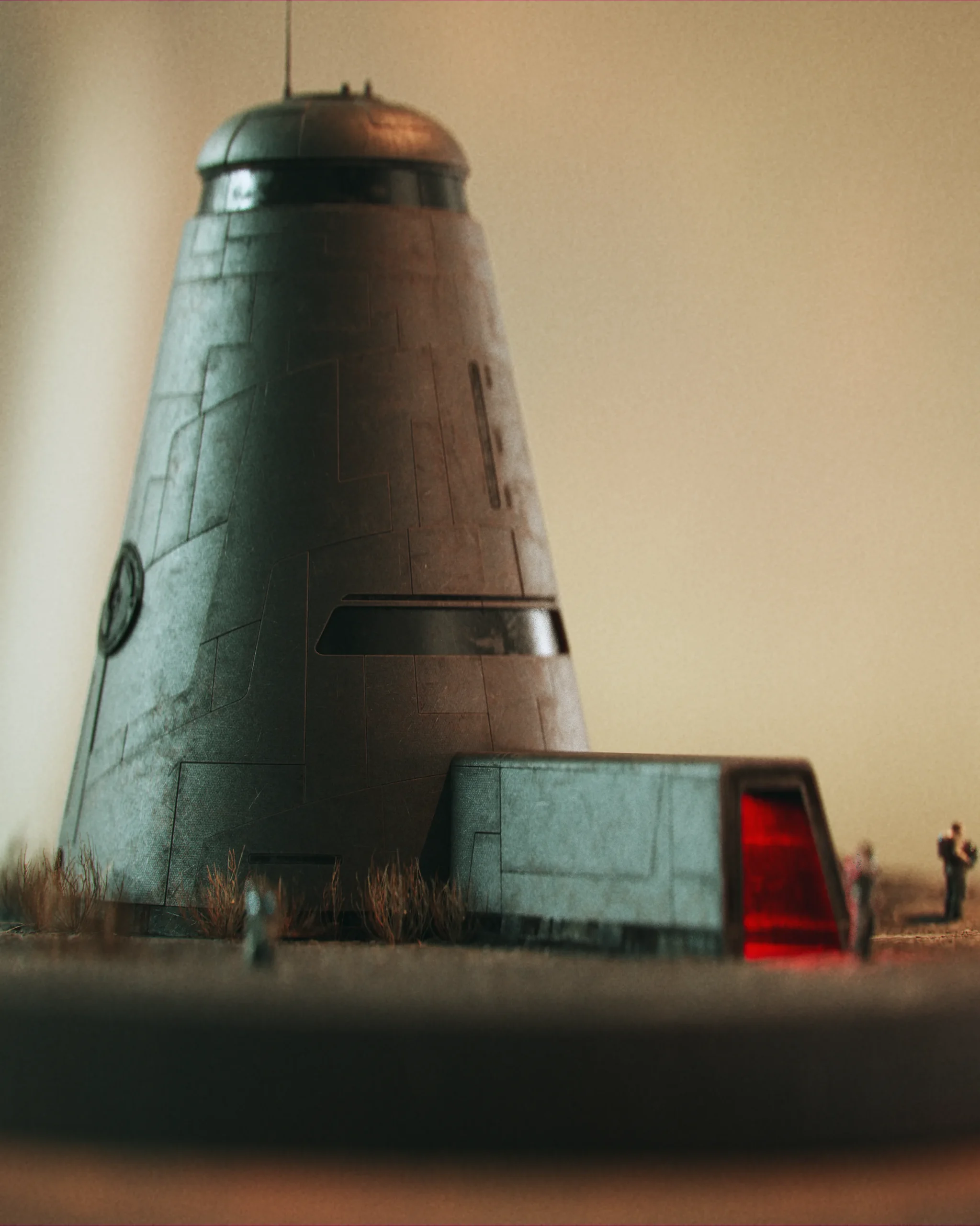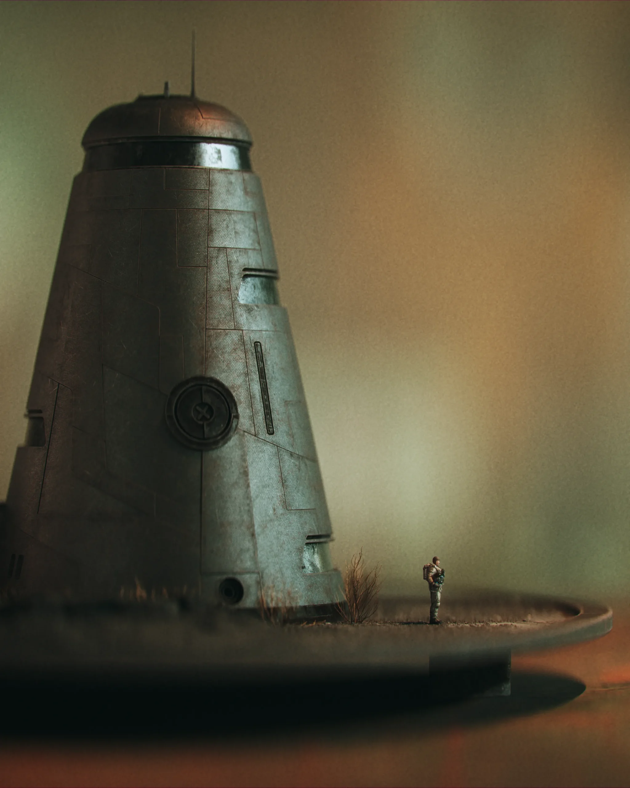 A grounded sci-fi structure that feels both engineered and inhabitable—positioned as a core unit within a larger terraforming ecosystem.